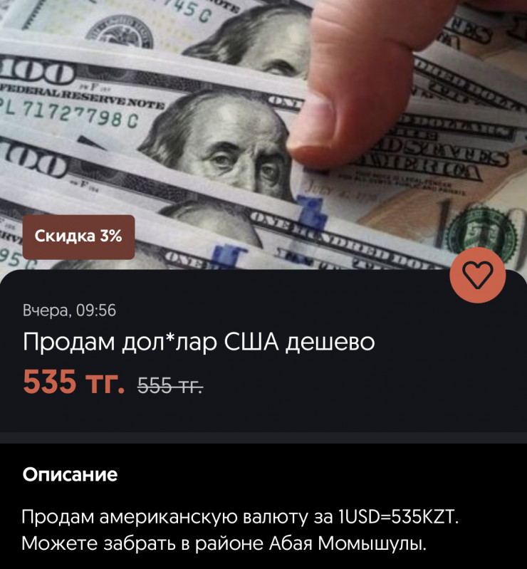 Частные объявления о продаже долларов начали появляться в Сети Фото ©️ Tengrinews.kz / Турар Казангапов