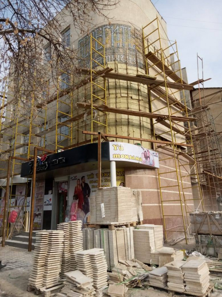 Эта мозаика расположена на фасаде городской поликлиники № 1 в центре Шымкента. Ремонт здания запланировали еще в 2017 году. Тогда же, говорят чиновники, были проведены исследовательские работы.