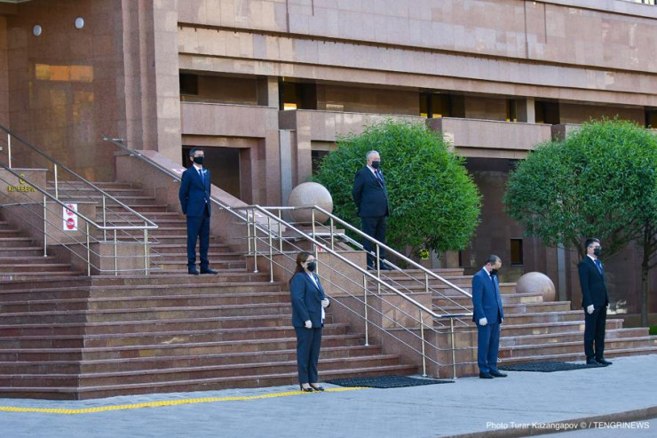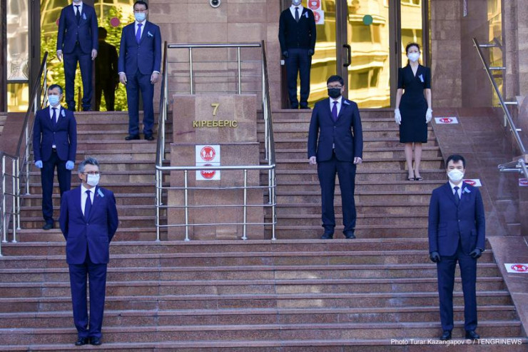 Руководители госорганов вышли из Дома министерств, чтобы почтить память жертв коронавируса в Казахстане, передает корреспондент Tengrinews.kz.
