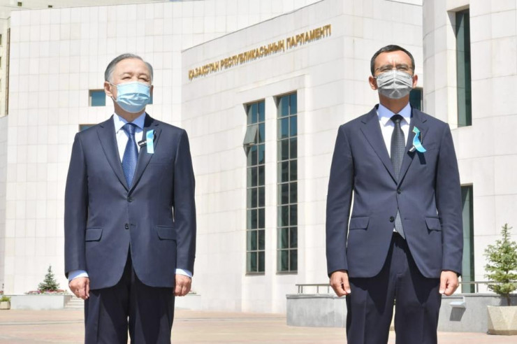 В церемонии также приняли участие руководители палат Парламента. Почтить умерших от коронавируса минутой молчания также вышли спикер Сената Маулен Ашимбаев и спикер Мажилиса Нурлан Нигматулин.