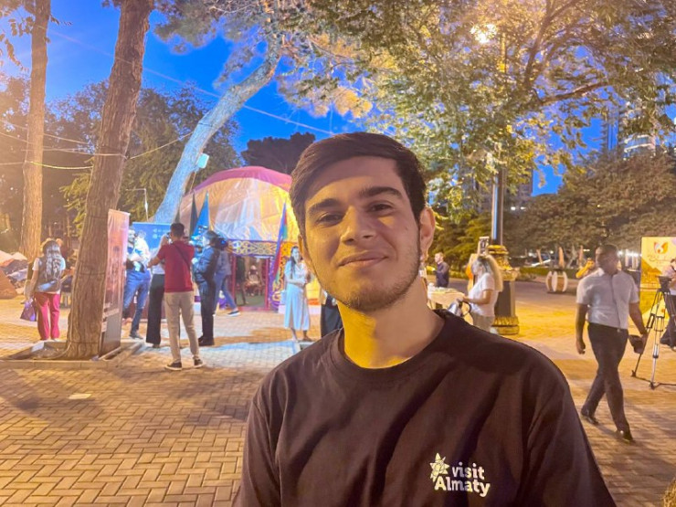 "Я увидел юрту, подошел и начал со всеми разговаривать на казахском языке. Мы поговорили, видимо, я им понравился, мне предложили поработать тут гидом. Я могу рассказать и о Казахстане, о туристических местах, о культуре, и о юрте, устройстве, обычаях. Я все это знаю", - гордо рассказал 20-летний Джавидан Гасанзаде.