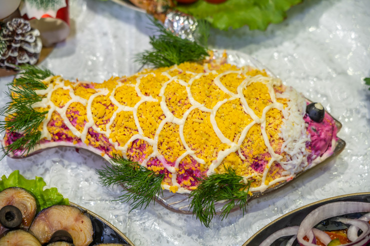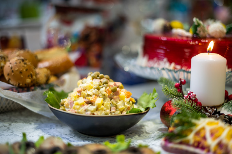 Самые популярные салаты - оливье, селедка под шубой, корейские салаты, морская капуста, "Гнездо глухаря" и "Крабовый" - любимая еда в любое время года в любом регионе. Также круглый год востребованы соленья. Особенно соленая и квашеная капуста: классическая или с грибами, со специями.