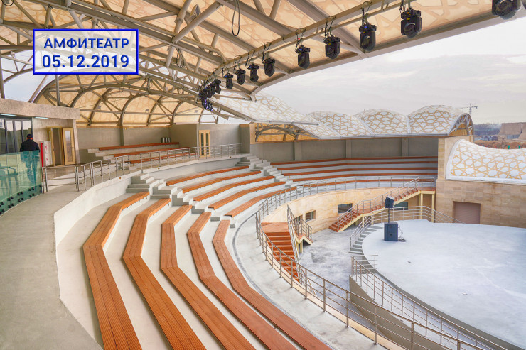 Амфитеатр — это подарок от Мангистауской области. Здание, расположенное в духовно-культурной зоне областного центра, рассчитано на 1 000 мест. Уникальность строения в том, что амфитеатр возведен под открытым небом в историческо-современном стиле.