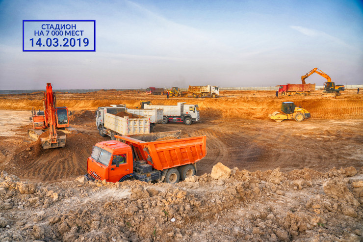 Строительство стадиона на 7000 мест начато в феврале 2019 года, задействовано порядка 100 человек.