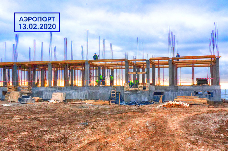 Сегодня здесь заканчивают строить фундамент терминала аэропорта и закладывают первый слой смеси песка и гравия для взлетно-посадочной полосы.