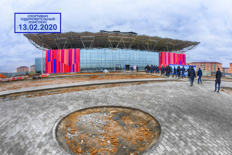 Строительство дворца спорта с бассейном начато в апреле 2019 года. Площадь участка составляет 3,82 гектара.