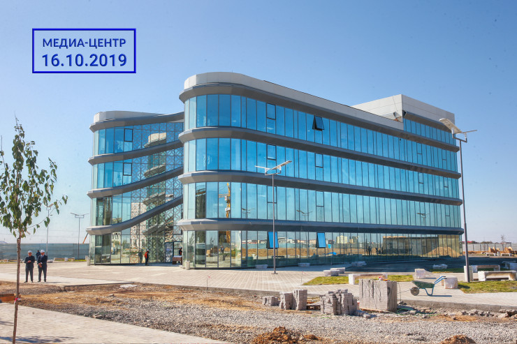 Медиацентр расположился по соседству с акиматом в административно-деловом центре. Это подарок духовной столице страны от Алматы. Строительные работы здесь также завершены в конце прошлого года, сейчас ведется установка всего необходимого оборудования. В современном четырехэтажном здании расположатся телестудии, монтажные, брифинг-центр, офисы. Здание полностью облицовано стеклом. Его площадь - более 3000 квадратных метров. Здесь будут находиться редакции всех телеканалов, газет и радио Туркестанской области. Планируется пригласить в регион и представителей крупных СМИ тюркоязычных стран.