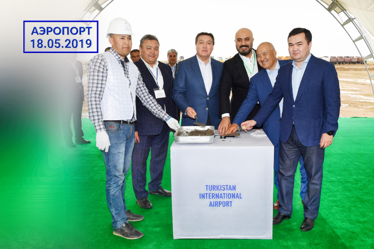 В мае 2019 года глава правительства принял участие в церемонии закладки капсулы на месте строительства Turkistan International Airport. Строить воздушную гавань будет турецкая компания YDA Holding, объем привлекаемых инвестиций составляет более 70 миллионов долларов.