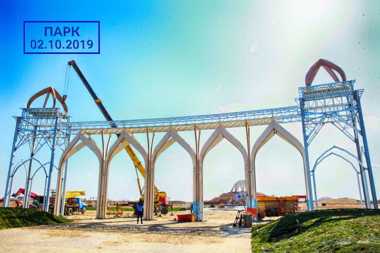На стройке объектов в Туркестане сейчас организована двухсменная работа. Если до начала застройки площадь города составляла 19 635 гектаров, то, согласно генплану, теперь она должна увеличиться до 23 000 гектаров.