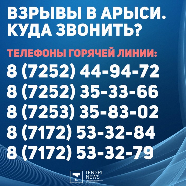 В связи с событиями в городе Арысь работает горячая линия.
