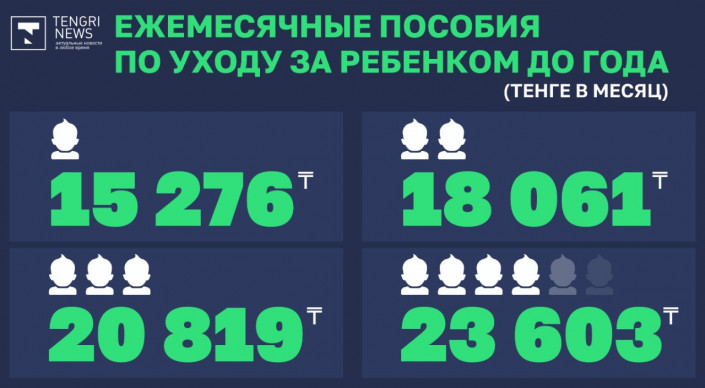 • Единовременное пособие по случаю рождения ребенка станет больше. За первого, второго и третьего ребенка женщины получат до 100 776 тенге, за четвертого - до 167 076 тенге.