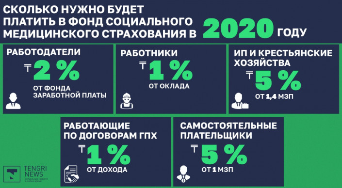 • Медицинская страховка станет обязательной в 2020 году. Основная разница в том, что теперь все пациенты, кроме бесплатной медицинской помощи, смогут претендовать и на более дорогостоящие услуги также бесплатно. В страховой пакет входят операции и медуслуги, прием у узких специалистов, а также услуги, призванные повысить качество жизни. В ОСМС входят: МРТ, компьютерная томография, ПЦР-анализ. Также будет предоставляться стационарозамещающая помощь, плановая стационарная помощь при болезнях, которые не входят в перечень тех, что лечатся бесплатно.