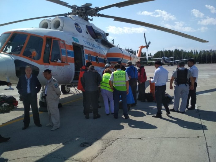 "Работа была проведена сегодня в районе 10 часов на высоте 4 100 метров. Вертолет забрал тело погибшего, а также пострадавших. После приземления в аэропорту Манас были проведены следственные мероприятия и опрос пострадавших на территории Кыргызстана. Ориентировочно в 13.30 воздушное судно совершило посадку в Алматы. Тело передано подразделению ДВД Алматы для проведения следственных мероприятий", - рассказал заместитель министра.