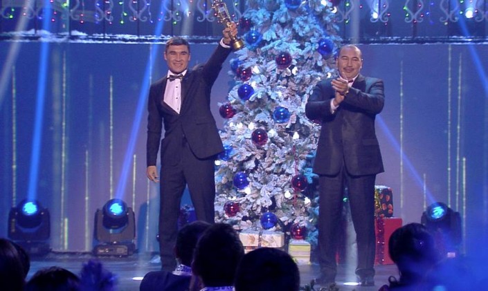 Тем временем, телеканал "Хабар" запустит праздничную программу 30 декабря. В 21.30 в эфире покажут церемонию награждения "Спортивной премии 2015". В течение двух часов зрители смогут увидеть не только награждение заслуженных спортсменов, но и жизнь за кулисами мероприятия. По сюжету главный герой данного события Данияр (Али Окапов), который работает простым электриком, мечтает в канун Нового года признаться в чувствах ассистентке продюсера – Айсулу, в которую давно и безответно влюблен. Смятение в ряды вносит новость о пропаже одной из статуэток, которую в финале вечера должны были вручить почетному гостю – Серику Сапиеву.