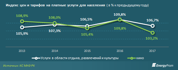 В свою очередь, по итогам прошлого года рост цен в целом на услуги в сфере культуры, отдыха и развлечений составил год-к-году сразу 6,7 процента, а услуги кино поднялись в цене лишь на 3,2 процента. Подобная картина наблюдалась последние 4 года.
