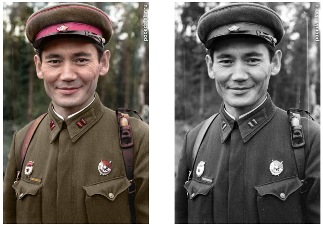 "Есть много техник колоризации черно-белых фотографий. В группе Colourisehistory в фейсбуке народ обменивается опытом, своими "фишками". У меня свои приемы - всем рассказываю, что и как", - говорит автор цветного фото Момышулы.
