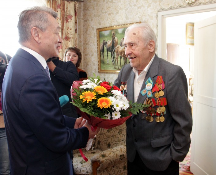 Сертификат на 500 тысяч тенге сегодня аким области также лично вручил Николаю Станских. Он в годы войны участвовал в боевых действиях на III Прибайкальском фронте, был снайпером-автоматчиком 51-го запасного стрелкового полка. Освобождал Литву, Латвию, а также Польшу. После окончания войны 30 лет проработал слесарем на Зыряновском свинцовом комбинате.