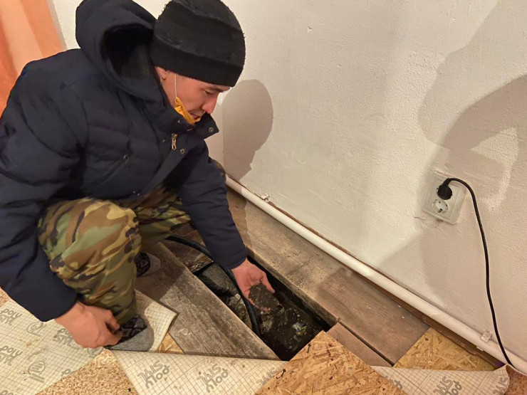 Тұрғындардың айтуынша, үй құрылысы толық аяқталмаған және ең үлкен мәселе - үйдің едені дұрыс салынбаған.
