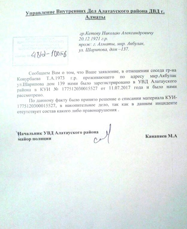 Как уже сообщалось, инцидент произошел вечером 11 июля в микрорайоне "Акбулак". Собаку по кличке Рада смертельно ранил сосед семьи Бокань Конурбаев в тот момент, когда она просунула нос в выкопанную им самим яму. Животное умерло в течение трех минут на руках хозяев, в частности, малолетнего сына.