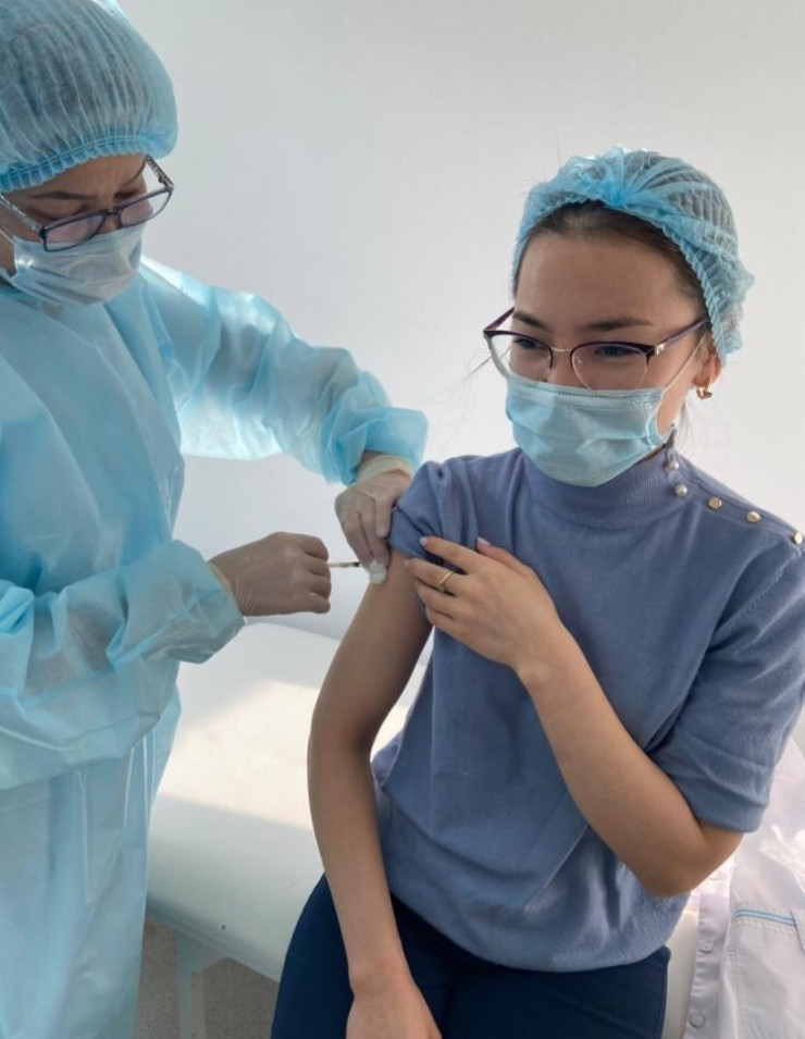 Жанар Нарымбет Талғар қаласындағы №2 орта мектептің биология пәнінің мұғалімі. Ол коронавирусқа қарсы вакцинаны 12 сәуірде салдырған.