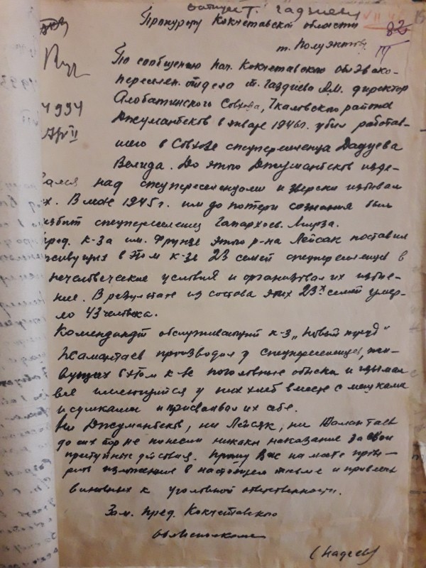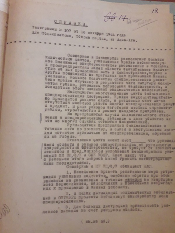 В документах, что сохранились в Акмолинском областном архиве, депортированных называют спецпереселенцами, эвакуированным населением. Во всех районах области были созданы специальные отделы, которые должны были заниматься хозяйственным и трудовым устройством депортированных.