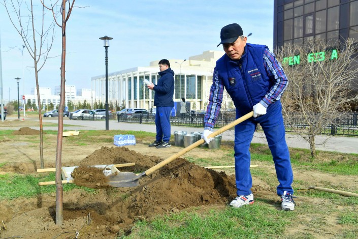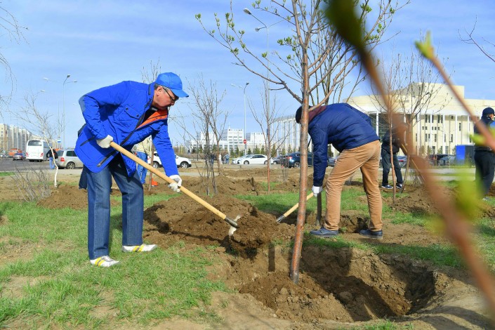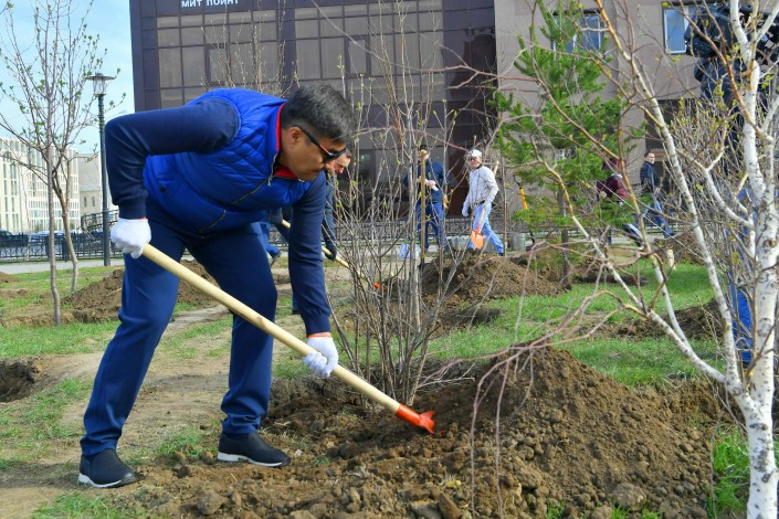На этот раз субботник для членов Парламента прошел вдоль проспекта Ұлы дала. Помочь городским властям в высадке деревьев вызвались несколько десятков депутатов Мажилиса и Сената.