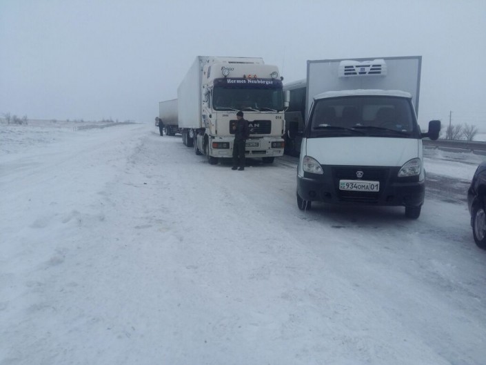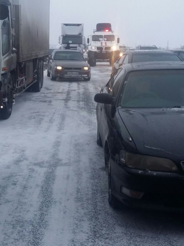 Как описывает происходящее один из водителей, стоящий в районе станции Баймырза, он выехал из Караганды в 6.00 утра и успел проехать только 20 километров. Потом автомобиль попал в пробку. Из-за плохой видимости водитель не смог оценить визуально, насколько растянулся затор.