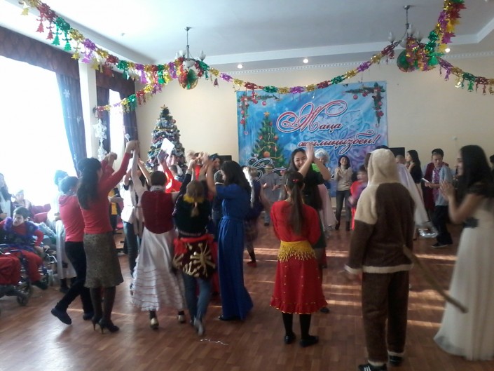 Школьники из Назарбаев Интеллектуальной школы физико-математического направления (НИШ ФМН) в Алматы поздравили с Новым годом постояльцев из дома-интерната для инвалидов с психоневрологическими заболеваниями, передает корреспондент Tengrinews.kz