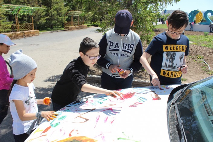В Астане дети разрисовали пальцами несколько белых автомобилей, передает Tengrinews.kz.