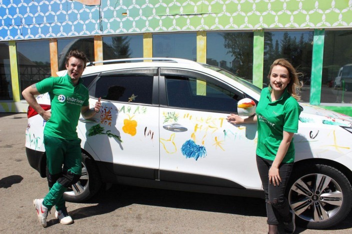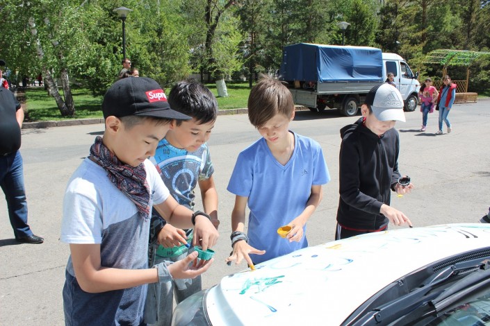 Им дали возможность выступить в роли дизайнеров. На авто появились смешные рожицы, разноцветные круги, линии и точки. А на капоте одной из машин красовалась надпись "Майнкрафт".