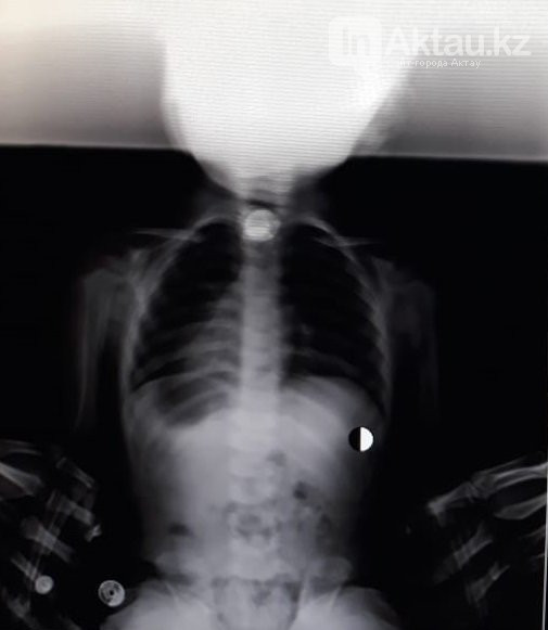 Девочку с жалобами на затрудненное дыхание доставили в приемный покой Бейнеуской ЦРБ 18 марта. Сделав рентген, медики обнаружили в дыхательных путях ребенка инородный предмет.
