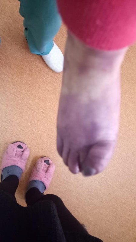 "22 декабря медсестра поставила катетер моей дочери на правую ногу. После этого ей было сделано 2-3 укола. Установку катетера никто, кроме медсестры, не регулировал. Но через три дня, увидев, в каком состоянии была нога моей дочери, я испугалась и рассказала медсестре. Тогда медсестра, которая устанавливала катетер, убрала его и позвала на помощь главу отделения и заместителя главного врача. Они сказали, что это не страшно. И делали на ее ножку компрессы", - написала мать девочки.