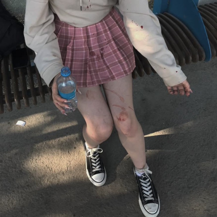 После этого машина остановилась, и женщины выбежали из нее. "Та, что впереди, побежала на меня и два раза ударила головой об угол остановки. Далее была серия ударов кулаком по голове вместе с матами о том, что я должна уважать старших и ей 35 лет, а я размалеванная ш****а. Далее меня по лицу, голове и рукам били уже две женщины. Увидев кровь на виске, меня ударили напоследок по лицу и убежали обратно в такси", - вспоминает Камила.