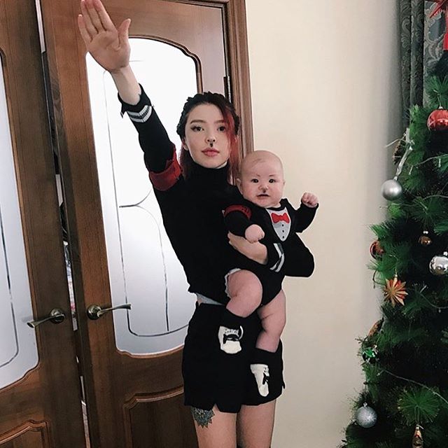 Судя по фотографии, которая была опубликована на странице skandal_krg в Instagram, снимок был сделан в канун Нового года. Девушка стоит возле елки, держа в руках малолетнего ребенка. Также героиня снимка показывает "нацистское приветствие", введенное во время Третьего рейха.