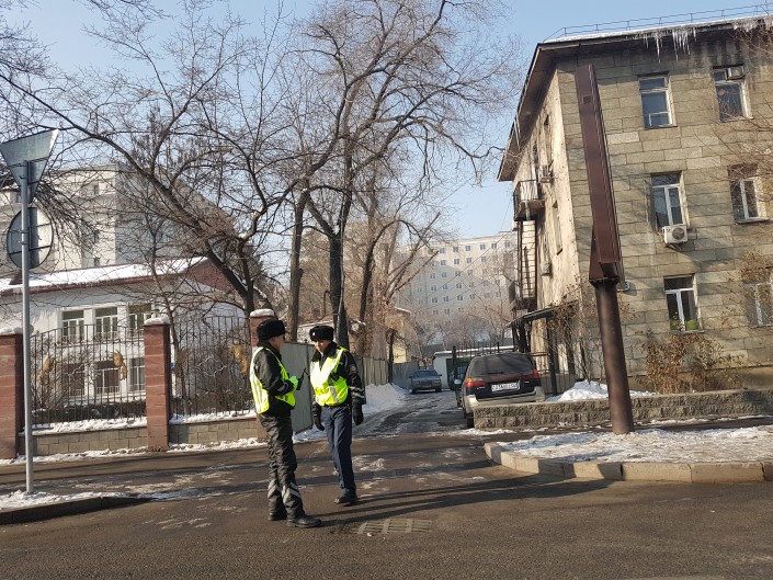 Добавим, что утром большое количество полицейских наблюдалось по проспекту Райымбек батыра в районе рынка "Алтын Орда".
