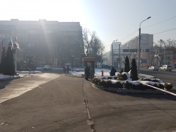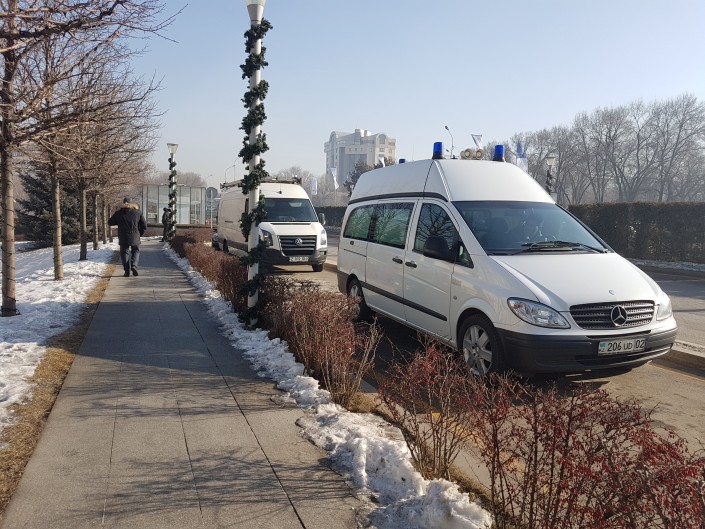 По проспекту Аль-Фараби, где расположен отель, наблюдается большое количество полицейских.