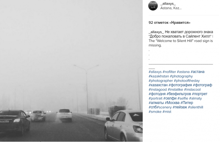 Добро пожаловать в Сайлент Хилл: Казнет шутит про смог в Астане Изображение взято из поста в Facebook