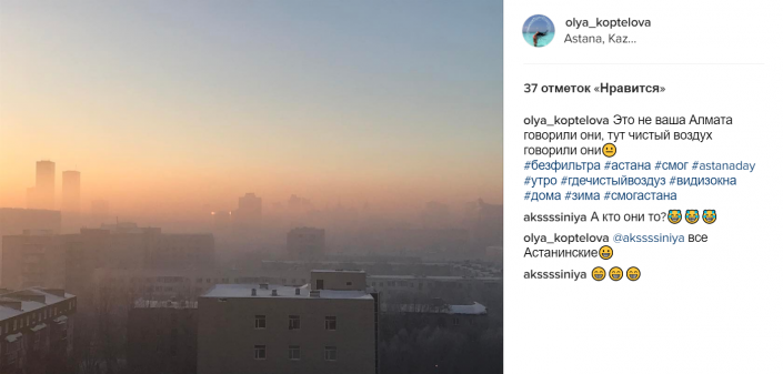 "Это не ваша Алмата говорили они, тут чистый воздух говорили они", - сетует пользователь Ольга Коптелова в Instagram.