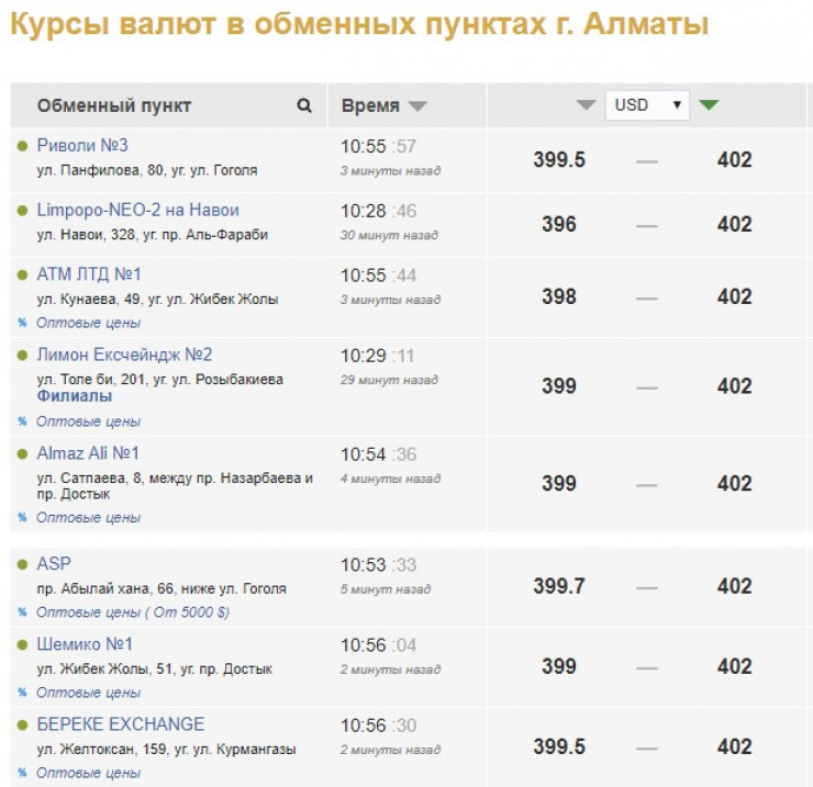 Обменные пункты Алматы продают доллар за 402 тенге. Об этом свидетельствуют данные Kurs.kz, передает Tengrinews.kz.
