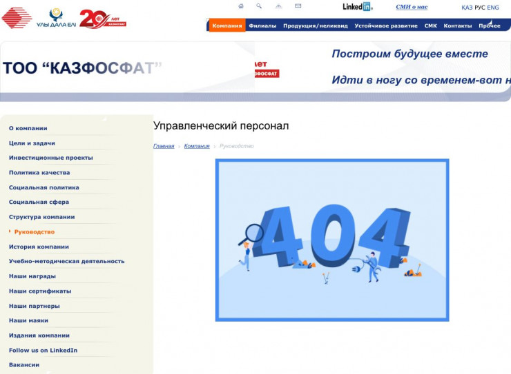 Отметим, что информация о руководстве ТОО "Казфосфат" на официальном сайте предприятия отсутствует.