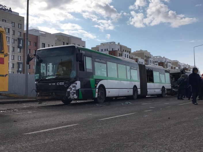 Ранее сообщалось, что 26 марта на пересечении проспекта Кабанбай батыра с улицей Улы Дала произошло ДТП с участием трех автобусов и легковых автомобилей. Автобус пригородного маршрута № 303 допустил столкновение с автобусом маршрута № 12. Были задеты автобус № 53 и машина скорой помощи.