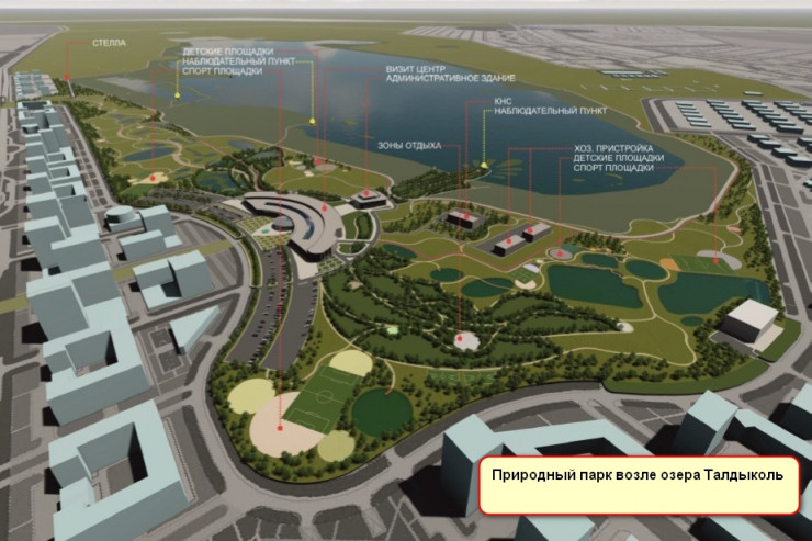 Вдоль территории планируется построить смотровые площадки и образовательные центры для будущих биологов и орнитологов. Таким образом, при создании инфраструктуры парк Талдыколь может стать центром для развития экотуризма, считают в управлении.