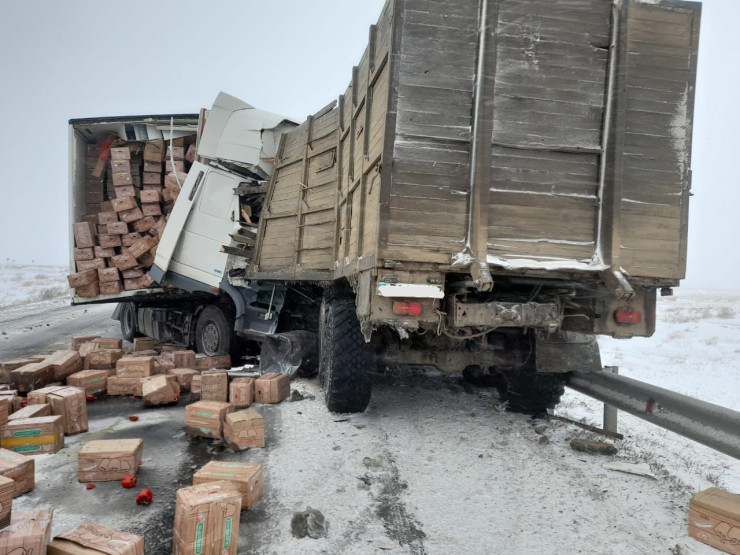 Два большегруза столкнулись на трассе республиканского значения Самара - Шымкент в Западно-Казахстанской области. В результате ДТП погибли два человека, передает корреспондент Tengrinews.kz.