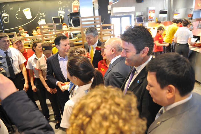 Напомним, ранее первый казахстанский McDonald's посетил Президент Казахстана Нурсултан Назарбаев. Позже пресс-секретарь Главы государства Даурен Абаев ответил на вопрос: "Является ли визит Президента своеобразным призывом к тому, чтобы казахстанцы питались фастфудом?". "Такие предположения не имеют под собой оснований. Питание - это, прежде всего, вопрос индивидуальных предпочтений. Нельзя отрицать и то, что открытие McDonald's стало ожидаемым событием для казахстанцев. В то же время, причины вчерашнего визита более прагматичны. Во-первых, в перспективе сеть предприятий обеспечит работой порядка 20 тысяч граждан. Во-вторых, продукция McDonald's на 70-80 процентов будет изготавливаться из местных продуктов. И в-третьих, очень часто инвесторы, прежде чем выходить на новый рынок, изучают представленность в нем крупнейших мировых брендов, и, конечно, McDonald's в этом списке стоит не на последнем месте", - заявил Абаев.
