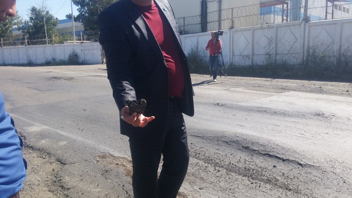 Экибастузский депутат рукой отколол асфальт, уложенный 2 недели назад Фото ©Tengrinews