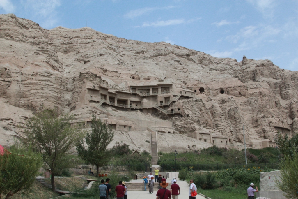 Далее на пути у казахстанцев оказался еще один большой буддийский храм "Мын уй" (в переводе - "тысяча домов") или, как его еще называют, "Пещера тысячи Будд". Он представляет множество пещер, вырезанных в горе. Его строительство началось в III-IV веках нашей эры и продолжалось около 500-600 лет. На сегодняшний день удалось обнаружить 339 пещер поклонения Будде. Каждая из них имеет отдельный вход и минимум две комнаты. На стенах сохранились остатки фресок, изображающих отшельническую жизнь и проповедь Будды.