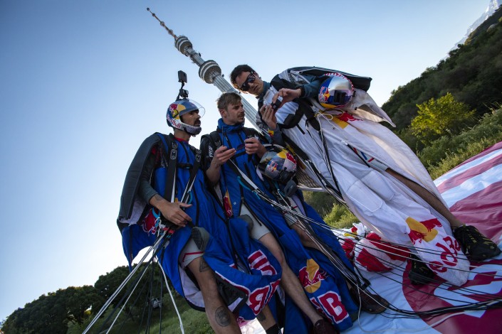 Полеты проходили 18 и 20 июня по согласованию со всеми ответственными службами города. Самолет Ан-2 доставил атлетов в назначенную точку выброса на высоте около 4 000 метров, которая территориально располагалась над ущельем Бутаковка. Воплотить в реальность этот уникальный прыжок и решить все организационные вопросы команде Red Bull Skydive помогли компания VisitAlmaty, акимат Алматы и Управление туризма города.