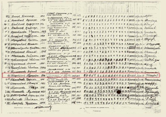 Бүгінге дейін сақталған оқу үлгерімі бойынша табельде Нұрсұлтан Назарбаевтың ылғи бестік бағаға оқығанын байқауға болады.