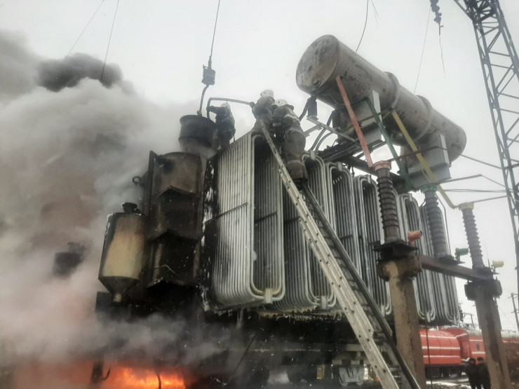 Пожар на электроподстанции случился рано утром в поселке Кушмурун Костанайской области. Подстанция обеспечивает весь поселок электроэнергией. Площадь пожара – 70 квадратных метров, его тушат 40 человек личного состава. Загорелось трансформаторное масло.