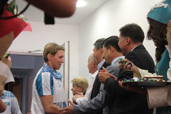 Спортсмены поблагодарили Президента Казахстана, властей города и всех тех, кто поздней ночью приехал в аэропорт Астаны приветствовать триумфаторов Олимпиады. Во время поздравительной речи аким Астаны Асет Исекешев лично вручил ключи от автомобилей спортсменам.